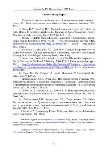 3. Parkin F. Middle class radicalism. Cambridge // Социальные движения и теория фрейминга. 1968. Pp. 467 - 474. [Электронный ресурс]. - http://www.ssa-rss.ru/index.php?page id=19&id=464(дата_обращения:19.07.2020).