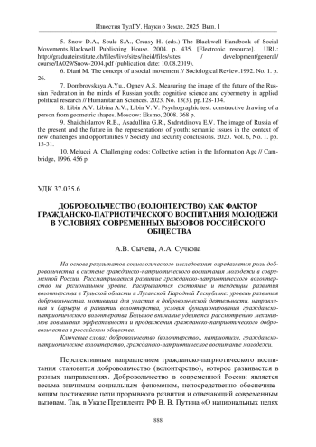 На основе результатов социологического исследования определяется роль добровольчества в системе гражданско-патриотического воспитания молодежи в современной России. Рассматривается развитие гражданско-патриотического волонтерство на региональном уровне. Раскрываются состояние и тенденции развития волонтерства в Тульской области и Луганской Народной Республике: уровень развития добровольчества, мотивация для участия в добровольческой деятельности, направления и барьеры в развитии волонтерства, условия функционирования гражданско-патриотического волонтерства Большое внимание уделяется рассмотрению механизмов повышения эффективности и продвижения гражданско-патриотического добровольчества в российском обществе.