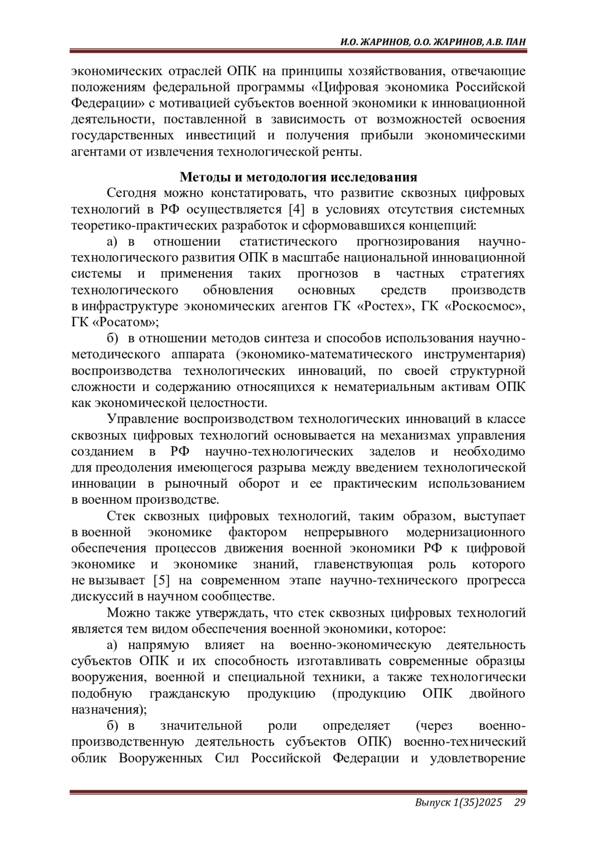 2. Жаринов И.О. Экономическая стратегия управляемой трансформации оборонно-промышленного комплекса на основе динамики суверенного стека сквозных цифровых технологий // Вооружение и экономика. 2023. № 4(66). C. 69-82. EDN: WKSHSU
