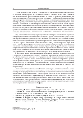 13. Иванов Н. Доля в исключительном праве // Интеллектуальная собственность. Авторское право и смежные права. 2017. № 1. С. 26-34.