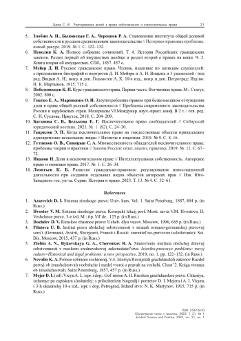 5. Злобин А. Н., Быковская Г. А., Черенков Р. А. Становление института общей долевой собственности в русском средневековом законодательстве // Историко-правовые проблемы: новый ракурс. 2019. № 1. С. 122-132.