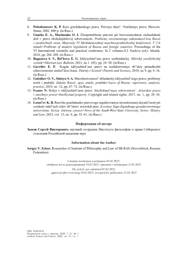 12. Гутников О. В., Синицын С. А. Множественность обладателей исключительного права: проблемы теории и практики // Законы России: опыт, анализ, практика. 2019. № 12. С. 67-72.
