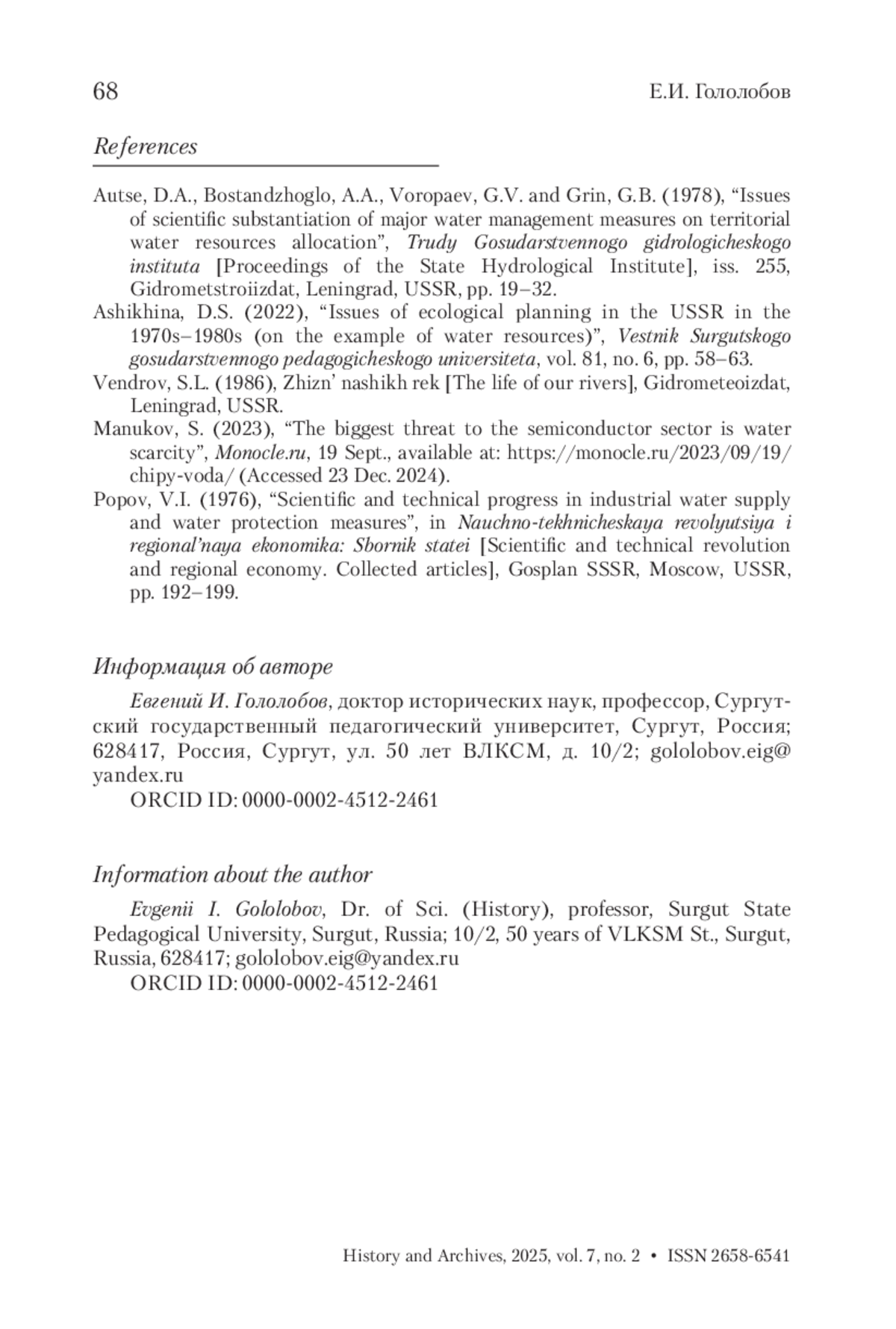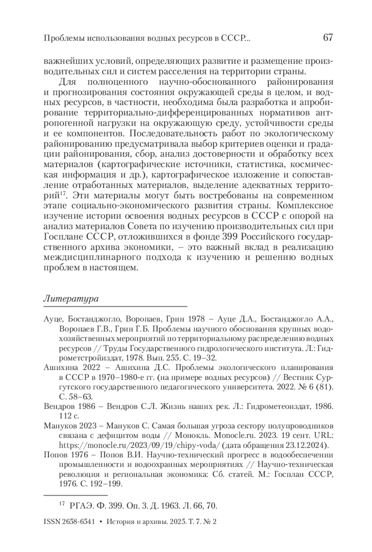 2. Ашихина 2022 - Ашихина Д.С. Проблемы экологического планирования в СССР в 1970-1980-е гг. (на примере водных ресурсов) // Вестник Сургутского государственного педагогического университета. 2022. № 6 (81). С. 58-63.