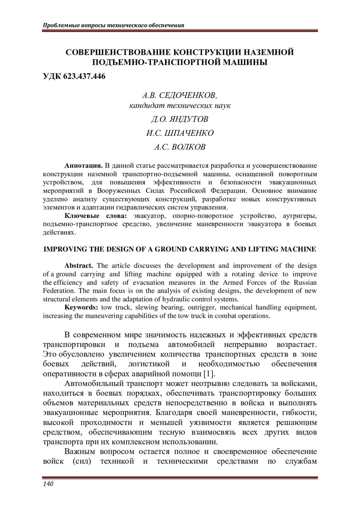 В данной статье рассматривается разработка и усовершенствование конструкции наземной транспортно-подъемной машины, оснащенной поворотным устройством, для повышения эффективности и безопасности эвакуационных мероприятий в Вооруженных Силах Российской Федерации. Основное внимание уделено анализу существующих конструкций, разработке новых конструктивных элементов и адаптации гидравлических систем управления.