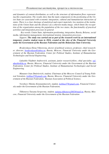 6. Раковская Л. Создание системы СМИ Союзного государства // Беларуская Думка. 2021. № 4. С. 100-104.