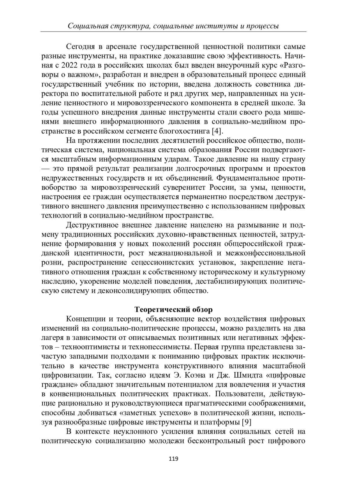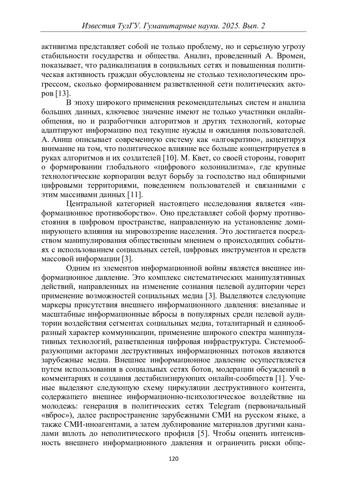2. Бродовская Е.В., Азаров А.А. Алгоритм автоматизированной идентификации информационных потоков внешнего деструктивного информационно-психологического воздействия на пользователей социальных медиа /// Власть. 2024. № 2. С. 89-96. EDN: TAKZAH