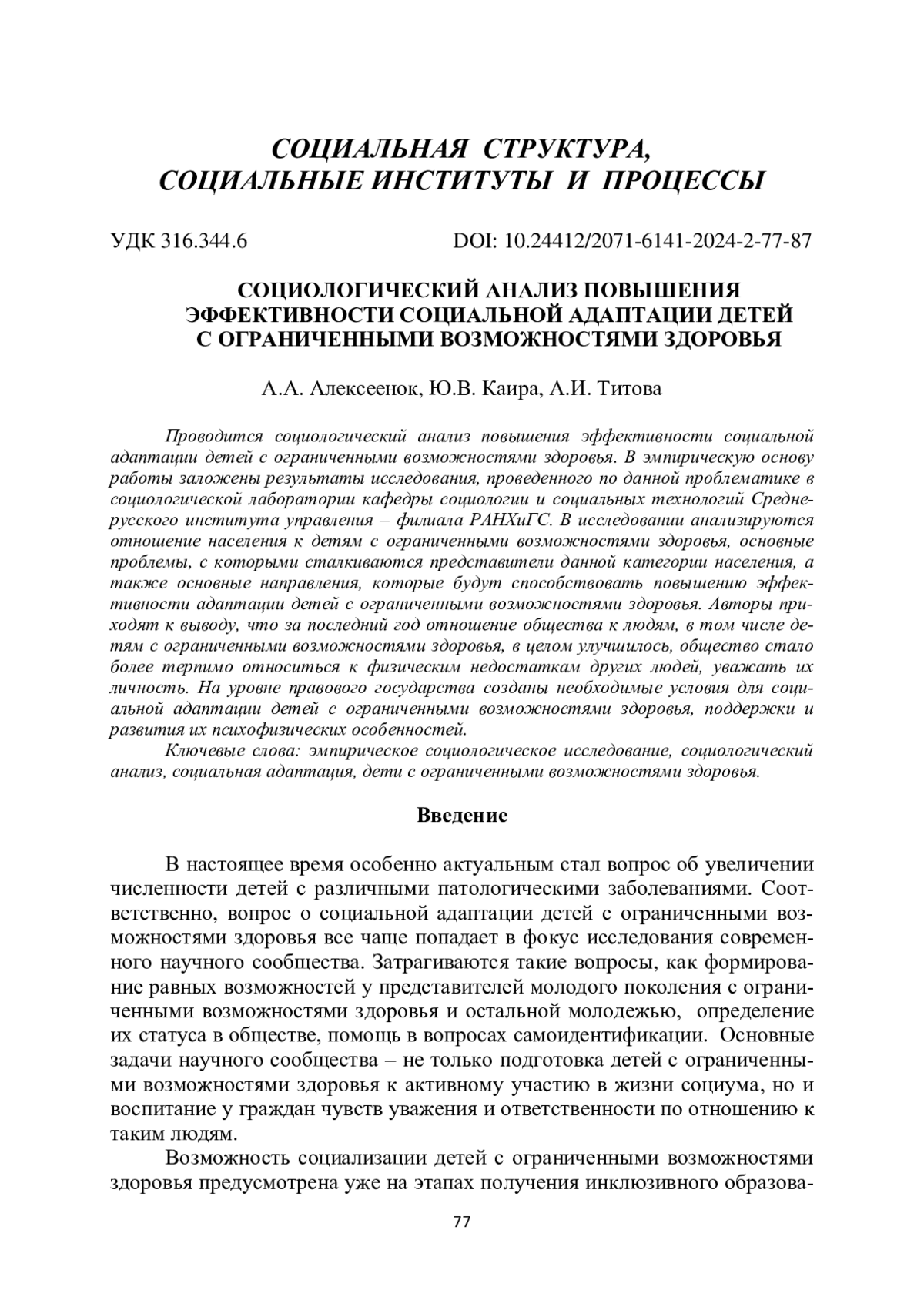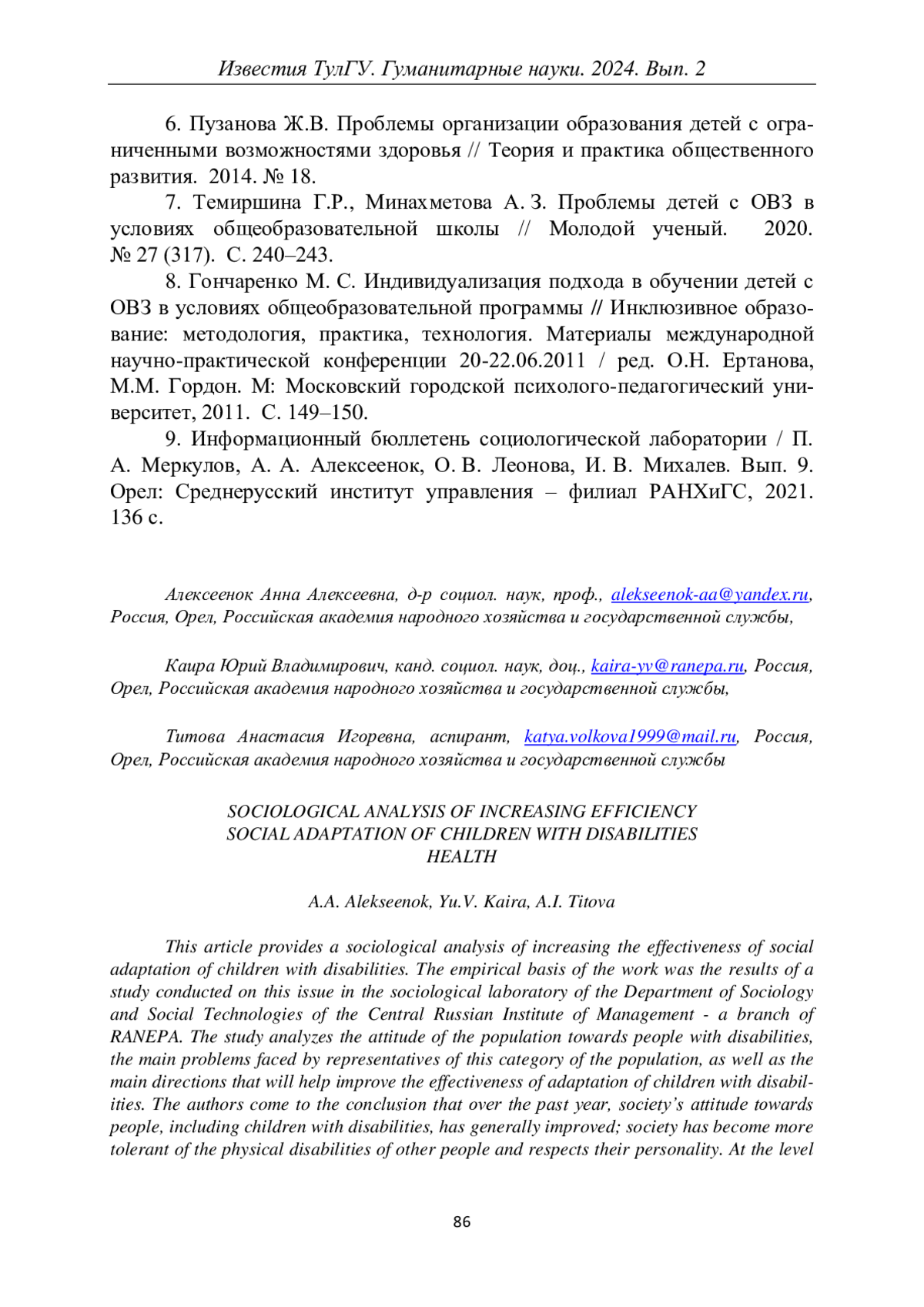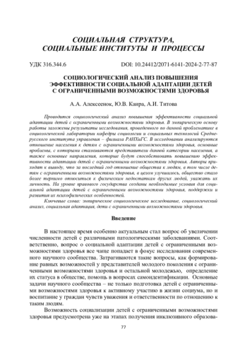 5. Алексеенок А. А., Домбровская А. Ю. Инвалиды в структуре российского общества // Фундаментальные исследования. 2013. № 1-3. С. 656-659. EDN: PUUISD
