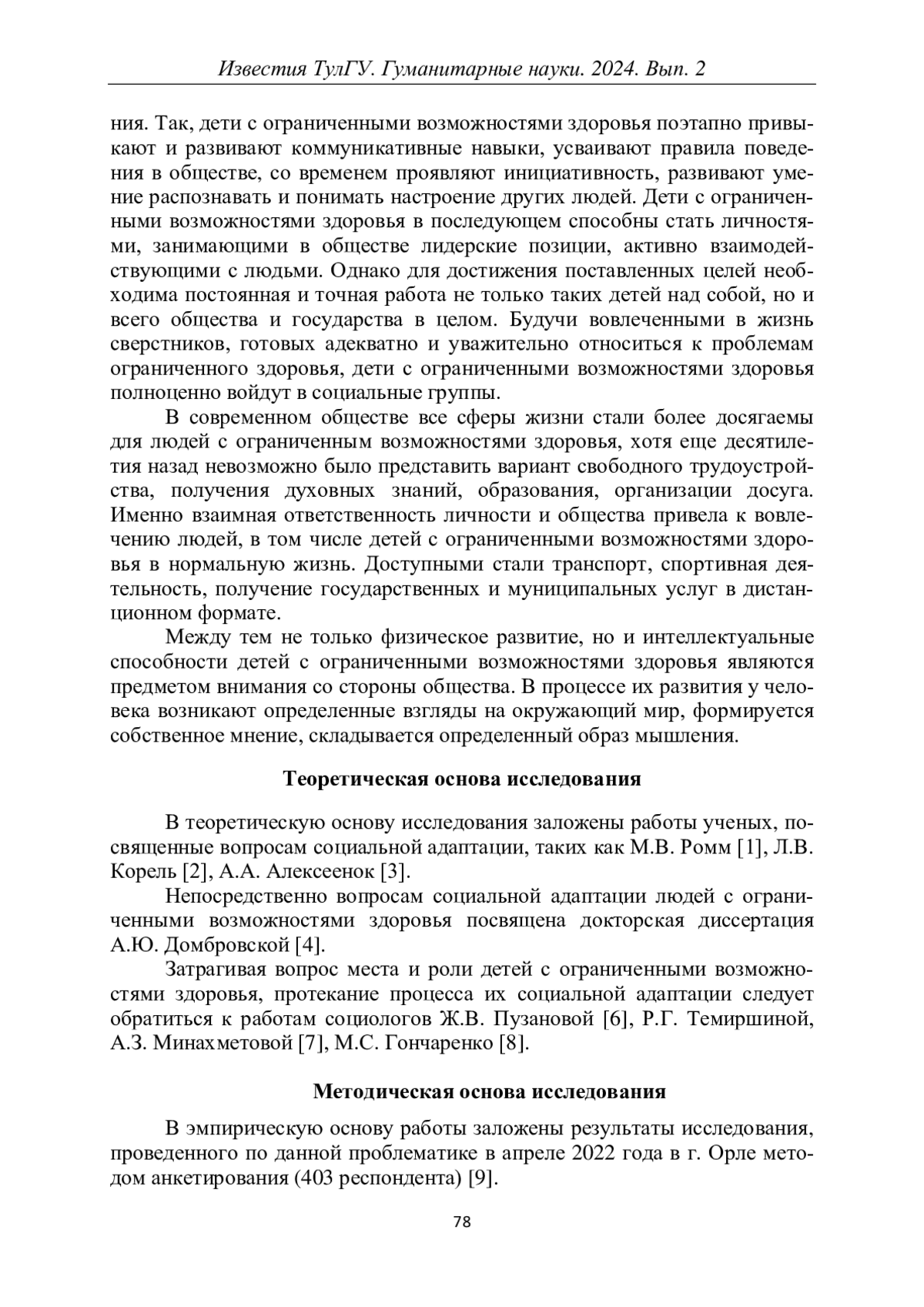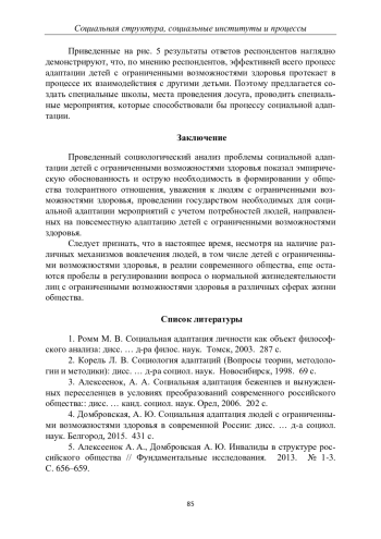 4. Домбровская, А. Ю. Социальная адаптация людей с ограниченными возможностями здоровья в современной России: дисс. … д-а социол. наук. Белгород, 2015. 431 с. EDN: KTGBOP