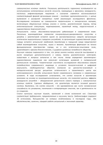 31. Деменёв Д.Н., Подобреева Е. К., Хисматуллина Д. Д. Ценностно-знаниевый и методологический ресурс дисциплин эстетического и проективного цикла в развитии архитектурно-художественного мышления // Философия образования. 2024. Т. 24. № 2. С. 114-130. URL: item.asp?id=67926482.