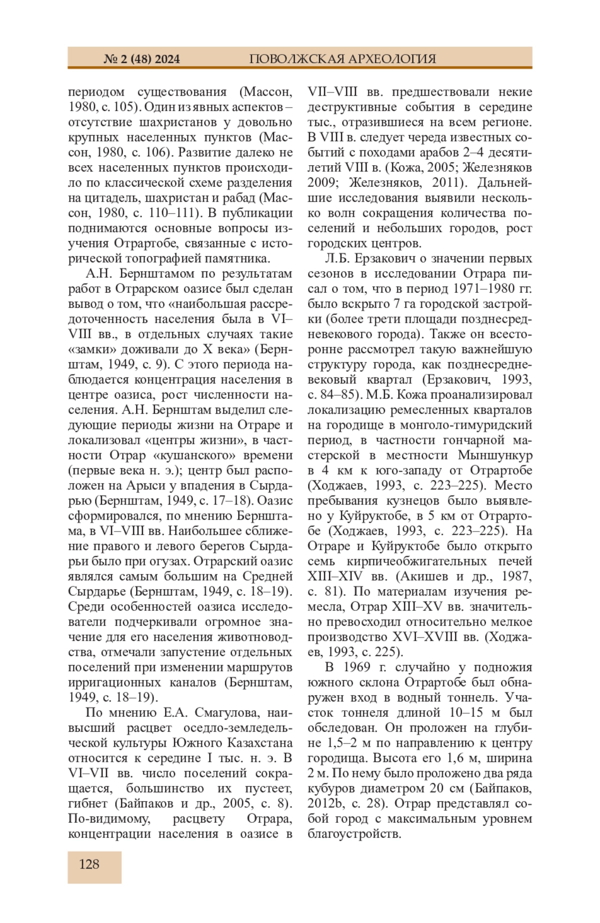30. Ерзакович Л.Б. О периодизации развития средневекового Отрара // Маргулановские чтения, 1990 г. / Отв. ред. З.С. Самашев. М: ИА РАН, 1992. С. 177-182.