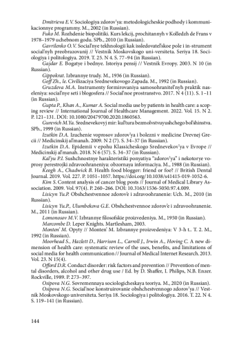 8. Гофф Ж., ле. Цивилизация Средневекового Запада. М., 1992. Груздева М.А. Инструменты формирования самосохранительных практик населения: социальные сети и блогосфера // Социальное пространство. 2017. № 4 (11). С. 1-11.