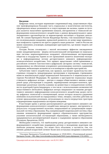 5. Лукушин В.А. Внешнее информационное давление на российскую молодежь как инструмент глобального противоборства // Общественные науки и современность. 2023. №3. С.68-82. DOI: 10.31857/S086904992303005X EDN: GHVNCJ