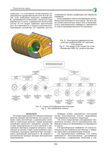 Результаты. В статье представлены типовые конструкции вентиляторов ветро-решетной очистки зерноуборочных комбайнов. Выявлено, что в настоящее время в сельскохозяйственной технике чаще всего используют два вида центробежных вентиляторов: с цилиндрическим или спиральным кожухами. Рассмотрено влияние коэффициента парусности и скорости витания зерна и сорной примеси на процесс сепарации. Приведен пример аналитического расчета конструкций лопаток и кожухов вентиляторов. В работе изложен способ расчета лопаток и кожуха вентилятора системы очистки. Составлена схема, содержащая классификацию вентиляторов по кожухам и лопастям с последующим определением вентилятора для зерноуборочных комбайнов различных классов. Определенны оптимальные параметры вентилятора для комбайнов с ветро-решетной системой очистки.
