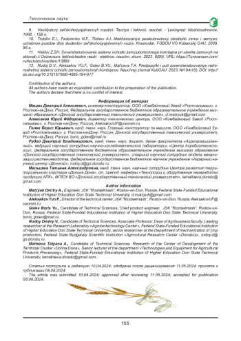 11. Халилов З.Ш. Совершенствование системы очистки зерноуборочного комбайна при уборке зерновых на склонах // Universum: технические науки: электрон. научн. журн. 2022. 6(99). URL: https://7universum.com/ru/tech/archive/item/13989. EDN: DNYCTB