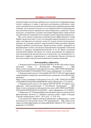 4. Кириенко О.Э. Товарная биржа как важный элемент рыночной инфраструктуры региона // Сборник научных работ серии “Государственное управление”. 2019. - № 1 (13). - С. 170-176. EDN: DTSVWX