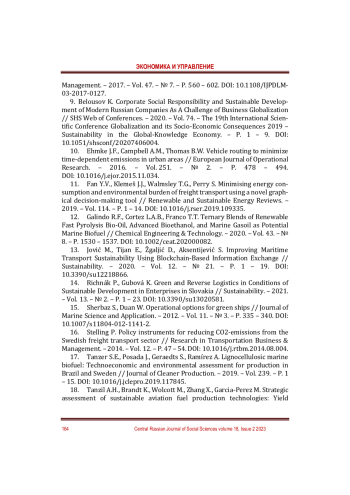 8. Bask A., Rajahonka M. The role of environmental sustainability in the freight transport mode choice: A systematic literature review with focus on the EU // International Journal of Physical Distribution & Logistics Management. - 2017. - Vol. 47. - № 7. - P. 560 - 602. DOI: 10.1108/IJPDLM-03-2017-0127