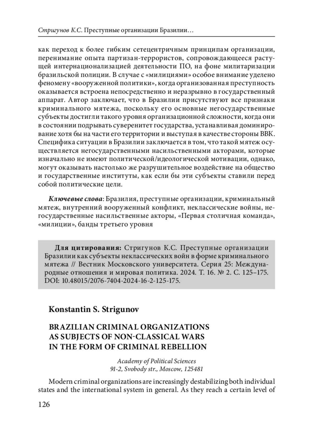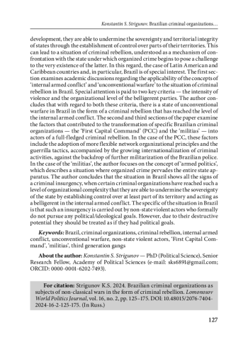 30. Coutinho L. The evolution of the most lethal criminal organization in Brazil - the PCC // Prism: A Journal of the Center for Complex Operations. 2019. Vol. 8. No. 1. P. 56‒67.