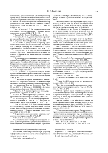 48. Соловей Ю. П. Кодекс административного судопроизводства Российской Федерации как законодательная основа судебного контроля за реализацией дискреционных полномочий публичной администрации // Административное право и процесс. 2016. No 1. С. 5-10. EDN: VKPMXN