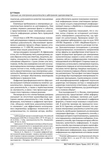 6. Демин А. А. Особенности правового регулирования электронных доказательств в гражданском, арбитражном, административном процессах // Вопросы российской юстиции. 2019. № 3.
