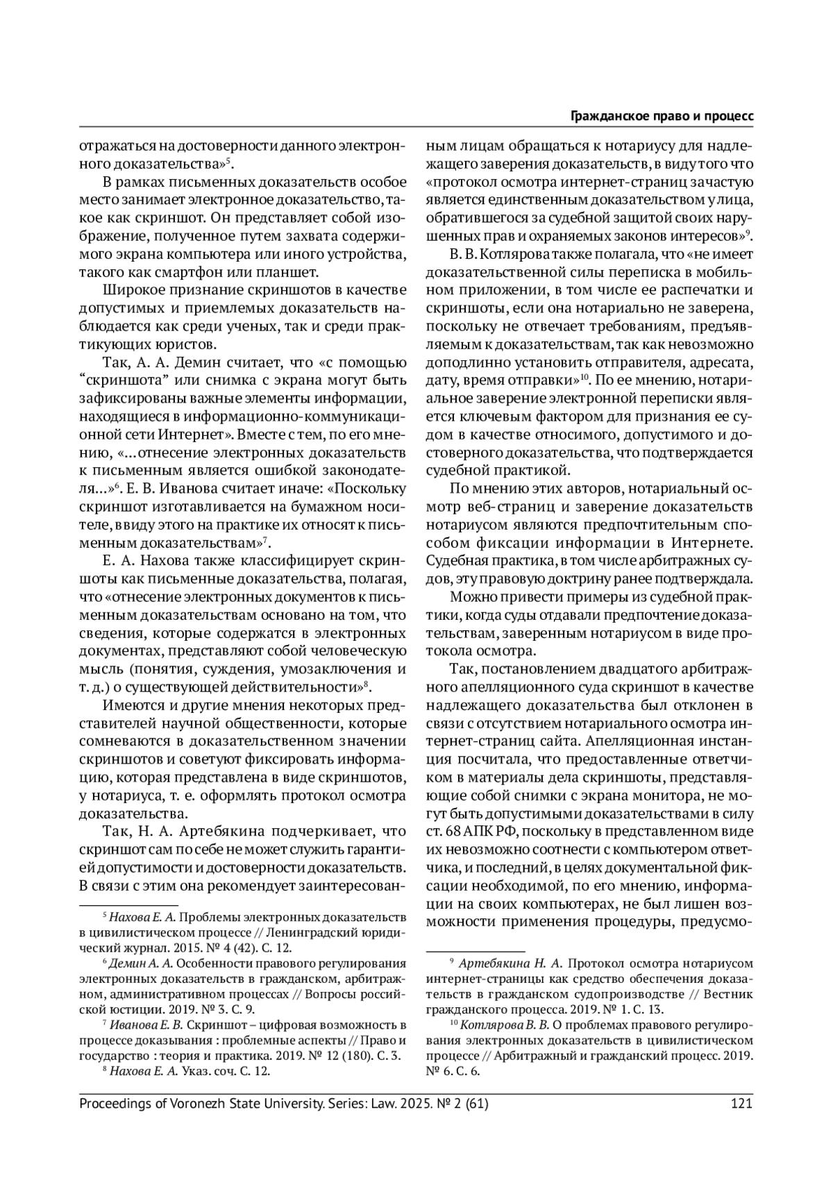 7. Иванова Е. В. Скриншот - цифровая возможность в процессе доказывания: проблемные аспекты // Право и государство: теория и практика. 2019. № 12 (180).