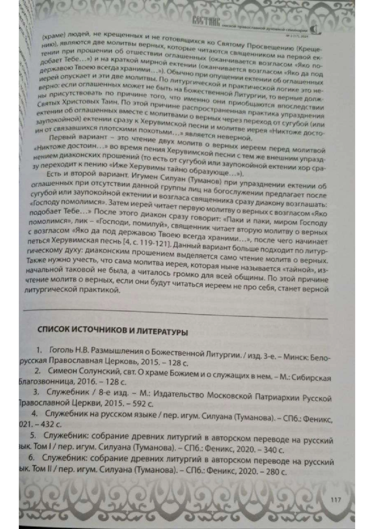 Попов А., диак. Ектения об оглашенных в русской церковной традиции начала XXI в. // Вестник Омской духовной семинарии. - 2024. - №2 (17). - С.112-117.