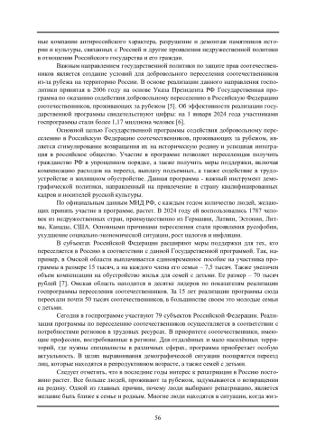 Ключевые фразы: государственная политика, соотечественники, содействие добровольному переселению, историческая правда, национальное единство