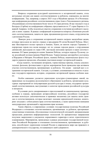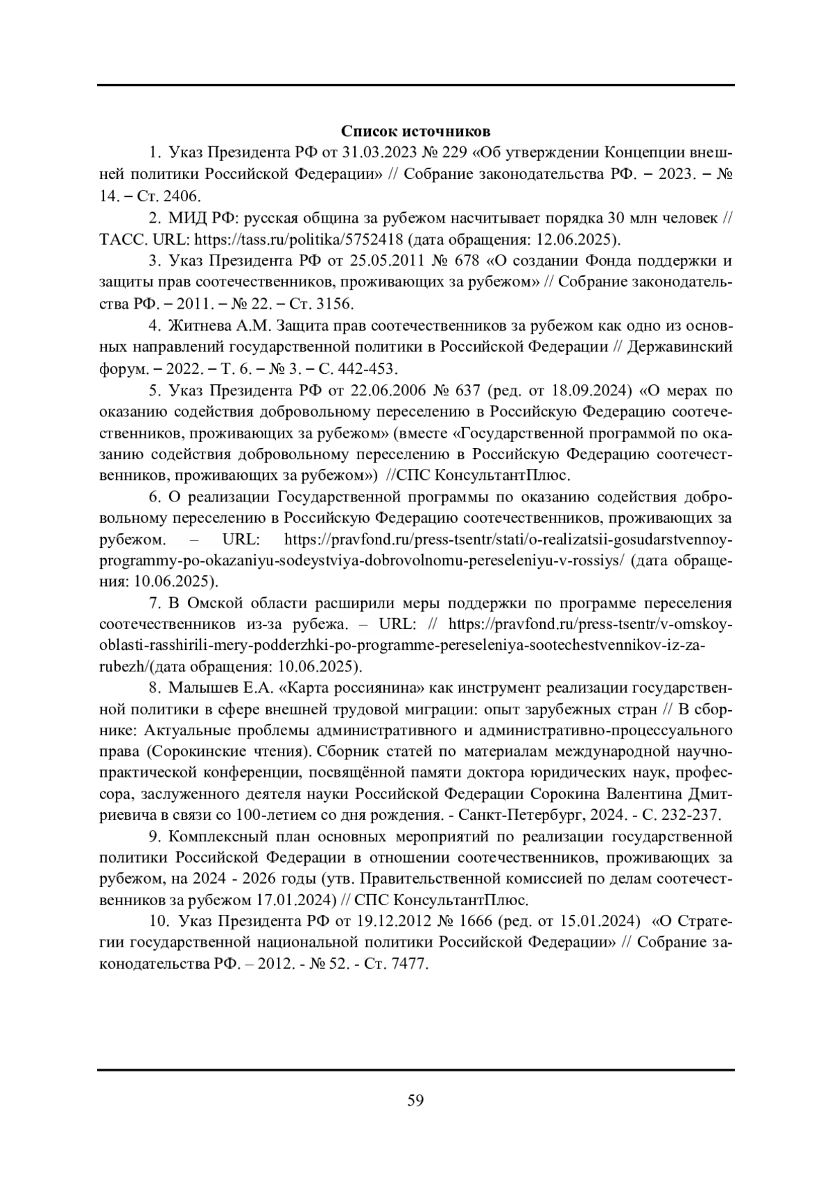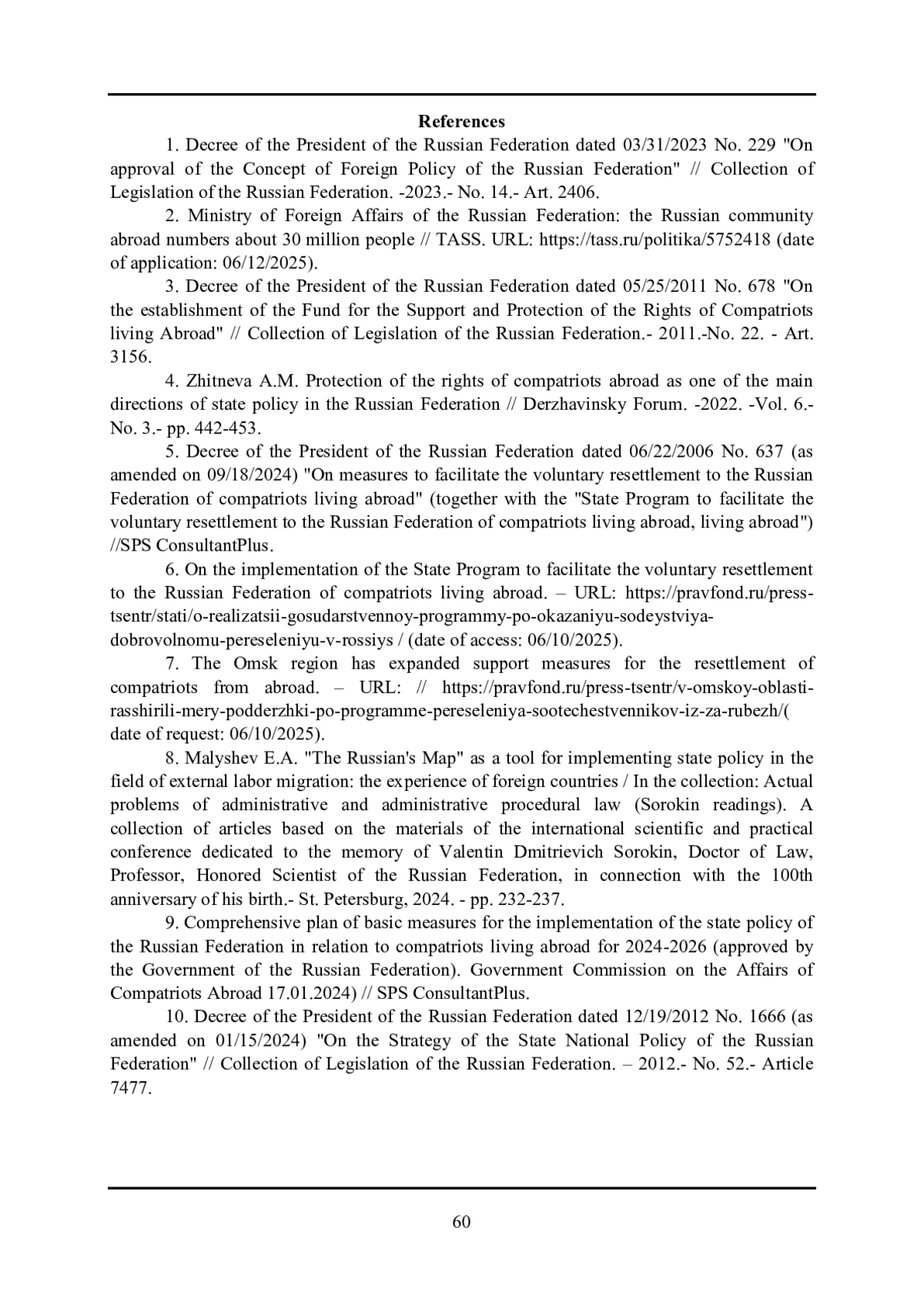 Статья: СОВРЕМЕННЫЕ АСПЕКТЫ РЕАЛИЗАЦИИ ГОСУДАРСТВЕННОЙ ПОЛИТИКИ РОССИЙСКОЙ ФЕДЕРАЦИИ В ОТНОШЕНИИ СООТЕЧЕСТВЕННИКОВ ЗА РУБЕЖОМ (2025)
