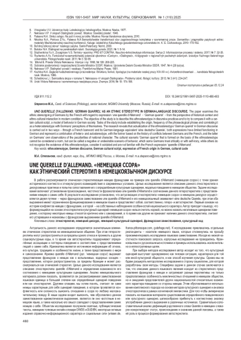 11. Фролова О.Н. Национальные стереотипы русских и немцев. ВестникЮУрГГПУ. 2008; № 10. Available at: https://cyberleninka.ru/article/n/natsionalnye-stereotipy-russkih-i-nemtsev. 12. Крысин Л.П. Этностереотипы в современном языковом сознании: к постановке проблемы. Философские и лингвокультурологические проблемы толерантности: коллективная монография. Екатеринбург: Уральский государственный университет им. А.М. Горького, 2003: 458-463. EDN: SIOERX