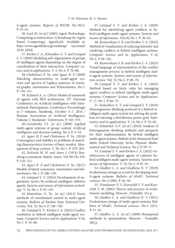 3. Городецкий В. И. Современное состояние и перспективы индустриальных применений многоагентных систем / В. И. Городецкий, О. Л. Бухвалов, П. О. Скобелев // Управление большими системами, 2017. - № 66. -С. 94-157. EDN: YZAKOV