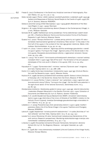7. Вязинкин А. Ю. (2022). Поколение “революционного перелома” в судьбе русской деревни первой трети XX в.: проблемы историографии // Вопросы истории. № 7-2. С. 153-165. EDN: IPECND
