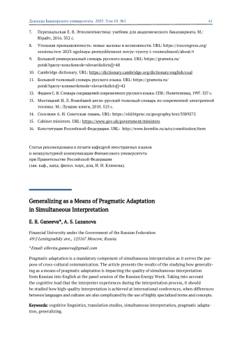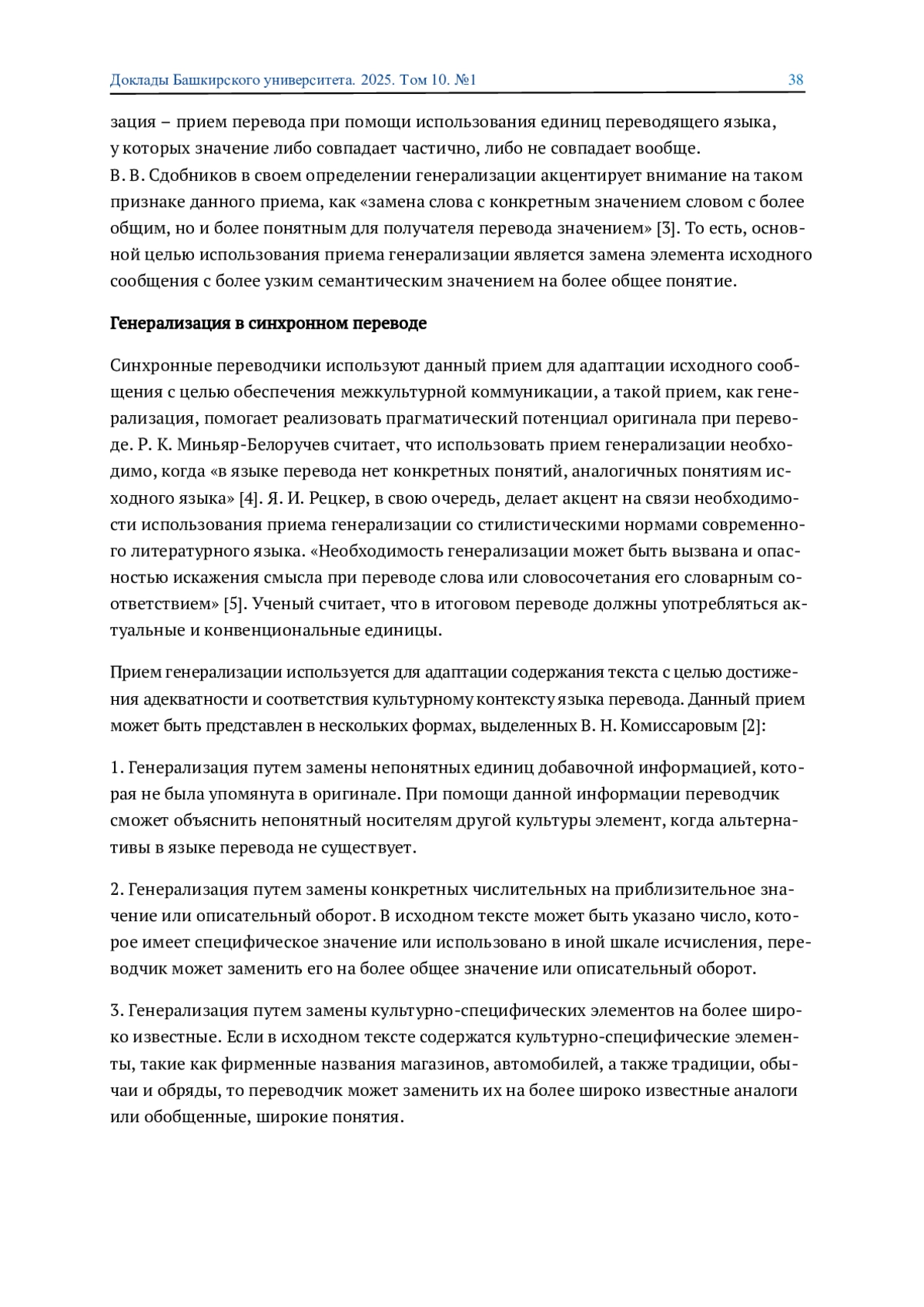 Статья: ГЕНЕРАЛИЗАЦИЯ КАК СПОСОБ ПРАГМАТИЧЕСКОЙ АДАПТАЦИИ В СИНХРОННОМ ПЕРЕВОДЕ (2025)