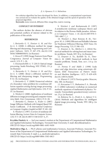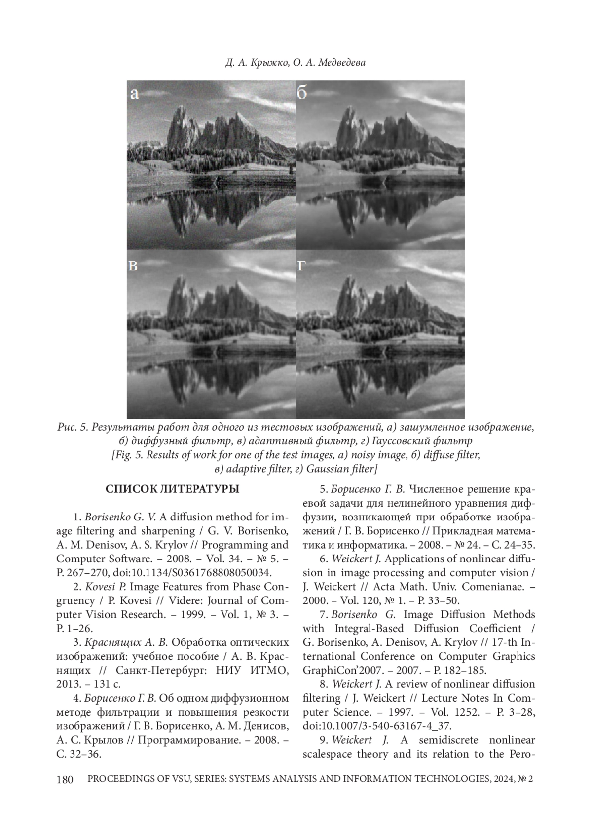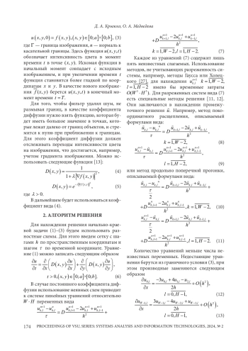 КРЫЖКО Д. А., МЕДВЕДЕВА О. А. ИСПОЛЬЗОВАНИЕ ДИФФУЗНОГО ФИЛЬТРА ДЛЯ УДАЛЕНИЯ ШУМА С ИЗОБРАЖЕНИЯ // ВЕСТНИК ВОРОНЕЖСКОГО ГОСУДАРСТВЕННОГО УНИВЕРСИТЕТА. СЕРИЯ: СИСТЕМНЫЙ АНАЛИЗ И ИНФОРМАЦИОННЫЕ ТЕХНОЛОГИИ. 2024. № 2