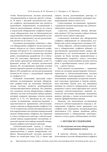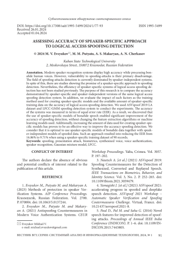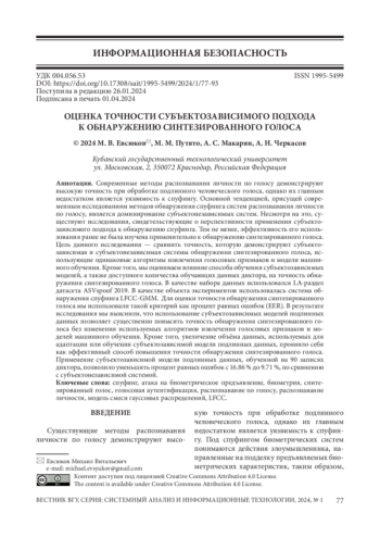 Статья: ОЦЕНКА ТОЧНОСТИ СУБЪЕКТОЗАВИСИМОГО ПОДХОДА К ОБНАРУЖЕНИЮ СИНТЕЗИРОВАННОГО ГОЛОСА (2024)