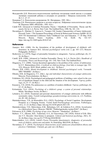 15. Фельдштейн Д.И. Психолого-педагогические проблемы построения новой школы в условиях значимых изменений ребенка и ситуации его развития // Вопросы психологии. 2010. № 3. С. 47-57.