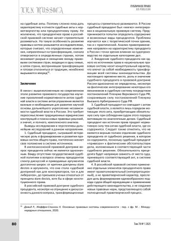 7. Савельев С. Л. Прецедент в России. Унификационный потенциал практики Президиума Высшего Арбитражного Суда РФ. М. : Статут, 2020. 272 с.
