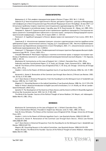 14. Lee T. Stare Decisis in Historical Perspective: From the Founding Era to the Rehnquist Court // Vanderbilt Law Review. 1999. No. 52. P. 647-735.
