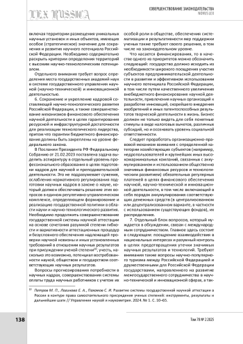 6. Петров М. П., Логинова Е. А., Пахомов С. И. Развитие системы государственной научной аттестации в России в контуре права самостоятельного присуждения ученых степеней: инструменты, результаты и дальнейшие шаги // Управление наукой и наукометрия. 2024. № 1. С. 10-65.
