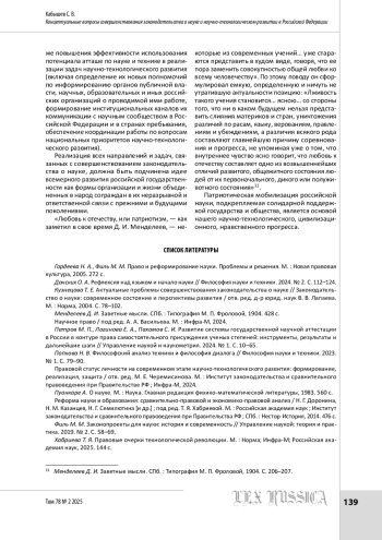 3. Кузнецова Т. Е. Актуальные проблемы совершенствования законодательства о науке // Законодательство о науке: современное состояние и перспективы развития / отв. ред. д-р юрид. наук В. В. Лапаева. М. : Норма, 2004. С. 78-102.
