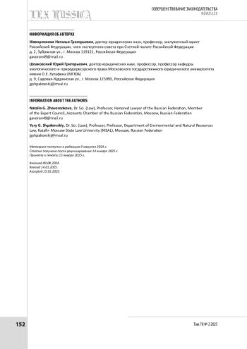 1. Жаворонкова Н. Г., Шпаковский Ю. Г. Цифровизация в сфере экологической безопасности: административно-правовые аспекты // Юрист. 2019. № 4. С. 14-19.