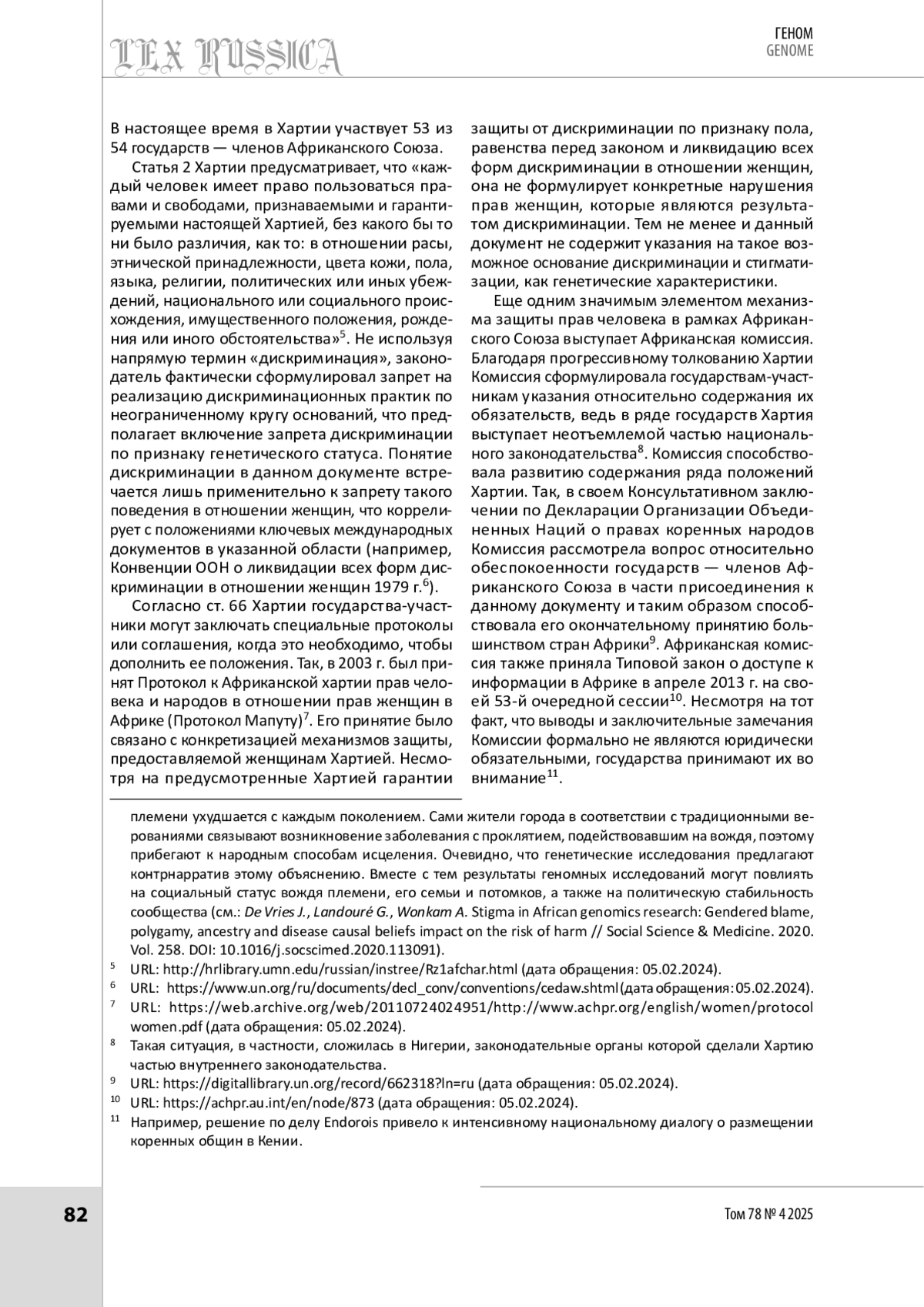 3. De Vries J., Landouré G., Wonkam A. Stigma in African genomics research: Gendered blame, polygamy, ancestry and disease causal beliefs impact on the risk of harm // Social Science & Medicine. 2020. Vol. 258. https://doi.org/10.1016/j.socscimed.2020.113091.