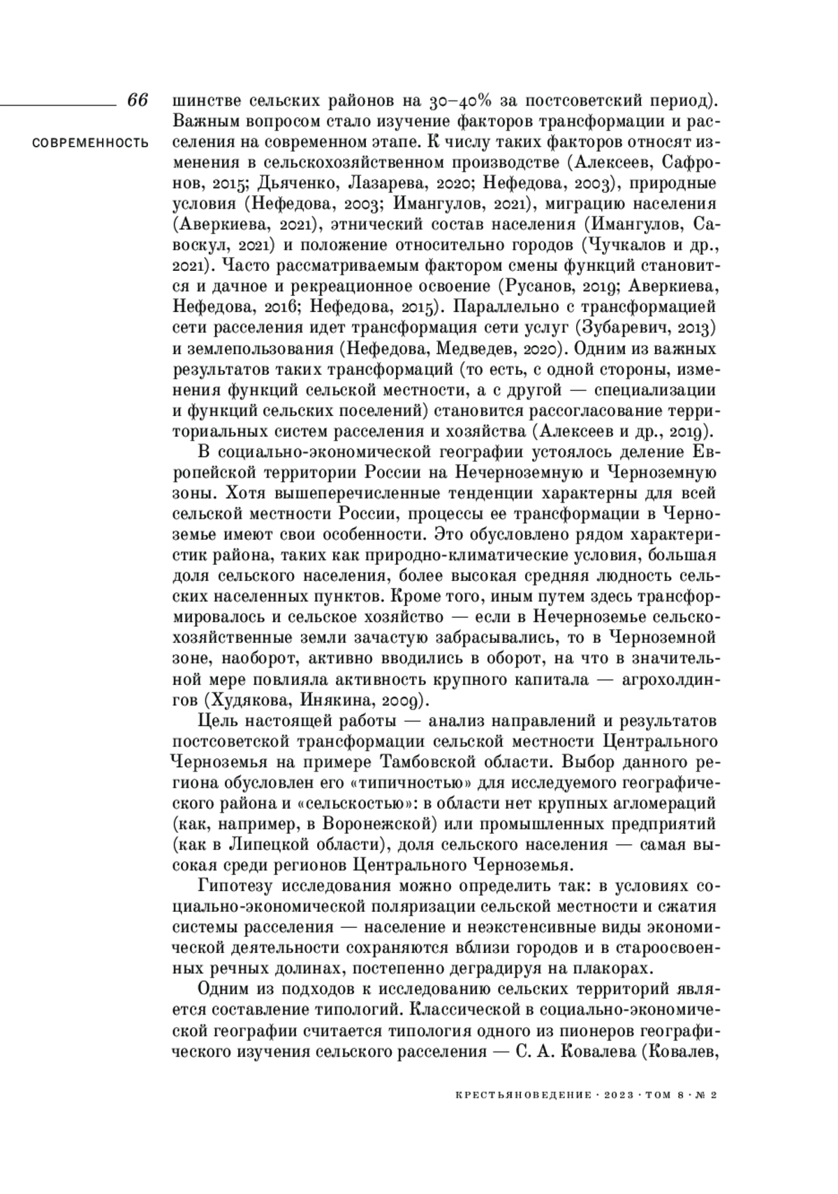 24. Нефедова Т. Г. (2012). Основные тенденции изменения социально-экономического пространства сельской России // Известия Российской академии наук. Серия географическая. № 3. С. 5-21. EDN: PAGJLN