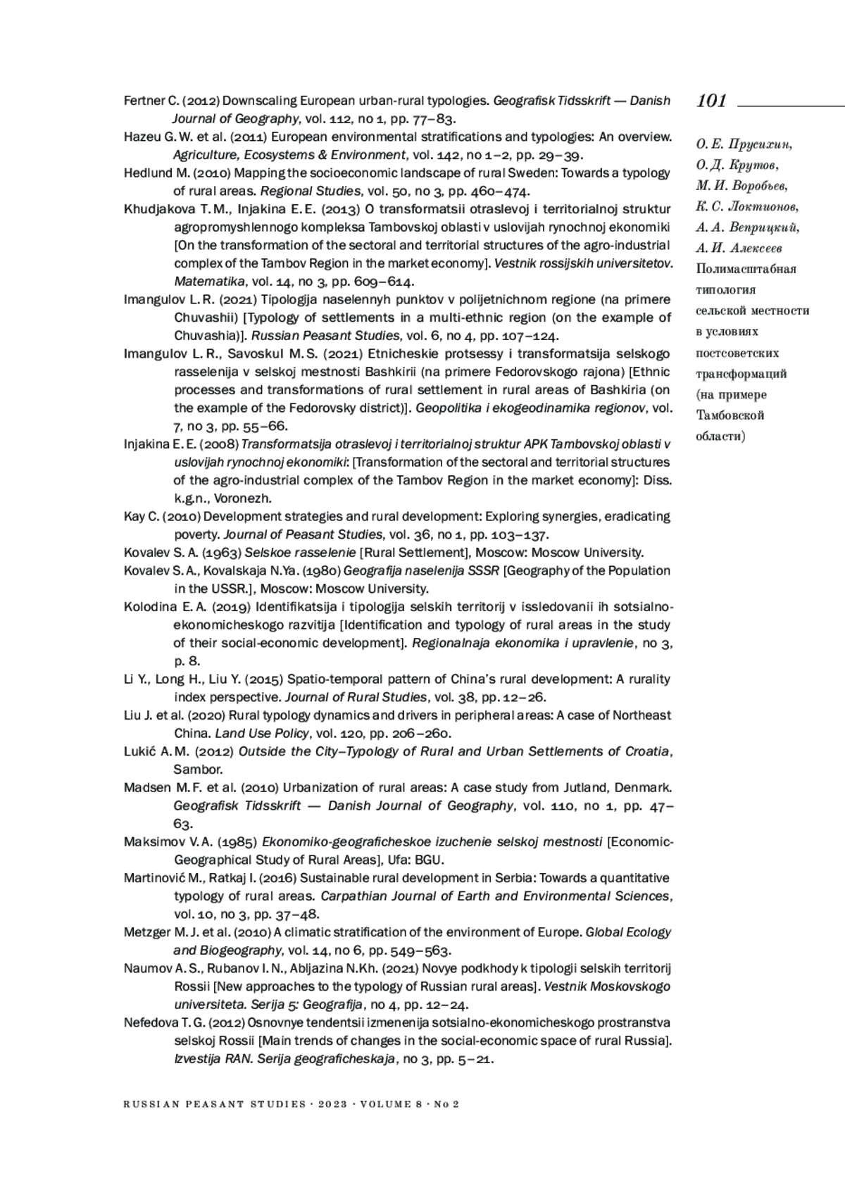 50. Liu J. et al. (2020).Rural typology dynamics and drivers in peripheral areas: A case of Northeast China // Land Use Policy. Vol. 120. P. 106-260.
