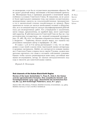 Review of the book: Schönfelder T., Fluss R., Erde S. Der Kuban und der agromeliorative Komplex. Eine sowjetische Umwelt- und Technikgeschichte 1929-1991. (Geschichte der technischen Kultur, Bd. 14), Brill Schöningh: Paderborn, 2022, XI + 324 s.