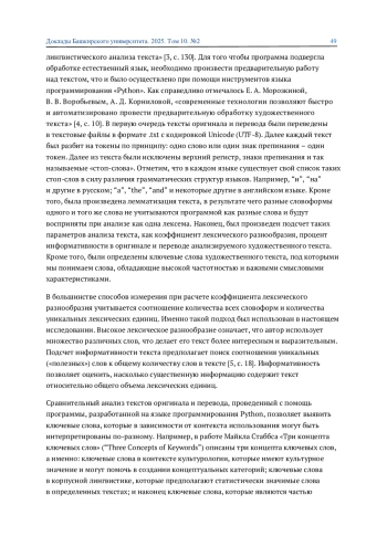 3. Морозкина Е. А., Воробьев В. В., Сафина З. М. Статистические методы исследования в художественном переводе // Доклады Башкирского университета. 2023. Т. 8. №3. С. 130-137. EDN: KHORTY