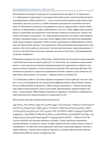 Термин «модальность» функционирует в различных областях науки: логике, философии, языкознании, литературоведении и др. В лингвистике семантическая категория модальности передает отношение говорящего к содержанию его высказывания, целевому наставлению, отношение содержания высказывания к действительности. В данной статье рассматриваются отдельные способы выражения модальности в политическом дискурсе, где модальность политического дискурса возможно рассматривать в т. ч. и как идеологический аспект, моделирующий особую реальность.