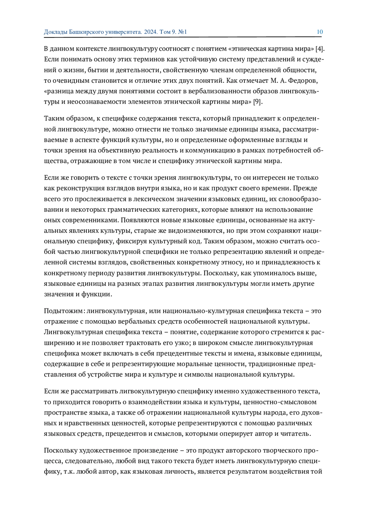 БУРУХИН В. В. ЛИНГВОКУЛЬТУРНАЯ СПЕЦИФИКА ХУДОЖЕСТВЕННОГО ТЕКСТА И ЕЁ ПРОЯВЛЕНИЯ // ДОКЛАДЫ БАШКИРСКОГО УНИВЕРСИТЕТА. 2024. Т. 9 № 1