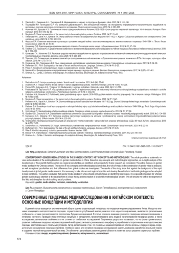 3. Ли Л. Изменение тем гендерных и коммуникационных исследований в Китае с медиаперспективы. Вестник Женского университета Китая. 2023; № 1: 83-89.