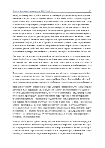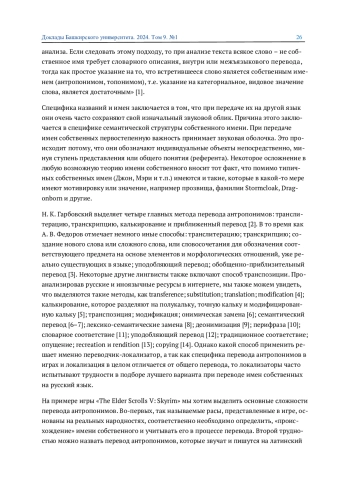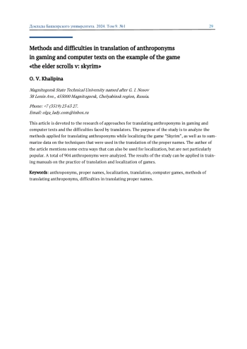 Статья: МЕТОДЫ И СЛОЖНОСТИ ПЕРЕВОДА АНТРОПОНИМОВ В ТЕКСТАХ ИГРОВОЙ И КОМПЬЮТЕРНОЙ НАПРАВЛЕННОСТИ НА ПРИМЕРЕ ИГРЫ "THE ELDER SCROLLS V: SKYRIM" (2024)