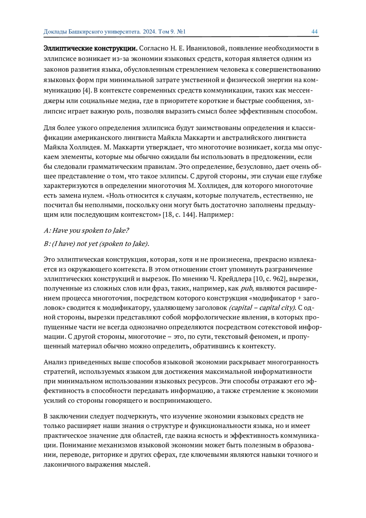 4. Иванилова Н. Е. Структурно-семантические особенности эллиптических предложений во французском и английском языках: автореф. дис. … канд. филол. н. Ростовский институт иностранных языков. 2008. 156 с. EDN: ZNMEIH