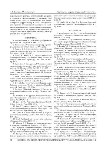17. Locher М. A., Watts R. J. Politeness theory and relational work // Journal of Politeness Research. 2005. № 1. Рр. 9-33.